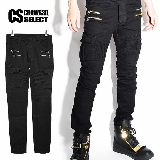 スキニーパンツ メンズ ライダースパンツ インポート デニムパンツ ジーンズ カーゴパンツ ブラック 黒 切替 美脚 細身 シルエット 脚長 足長 ボトムス きれい目 お兄系 ホスト V系 ビジュアル系 モード系 ストリート系ファッション 衣装