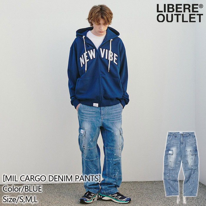 LIBERE リベーレ ミル カーゴ デニム パンツ 長ズボン Gパン ジーパン ジーンズ カラーデニム ペンキ加工 しぶき 青 ブルー[MIL CARGO DENIM PANTS/BLUE]公式アウトレット