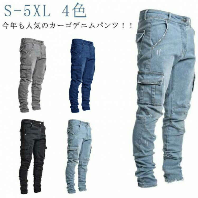 スキニー カーゴパンツ デニムパンツ ジーパン ストレッチ デニムパンツ 大きいサイズ タイト ダメージ テーパード メンズ スリム スキニーデニム 作業着 作業ズボン 長ズボン 伸縮性 パンツ ワークデニム ジョガーパンツ ジーンズ ロングパンツ 春 夏