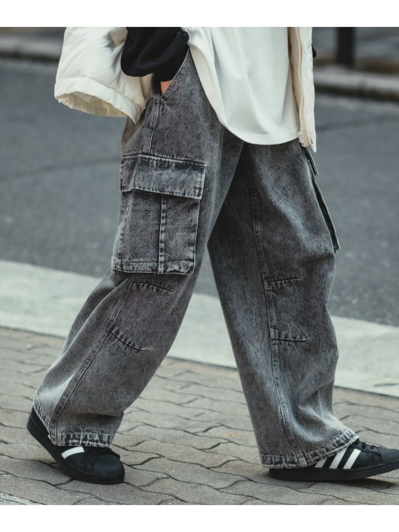 ASTRONOMY 【セットアップ可能】ウォッシュ加工カーゴデニムパンツ カジュアル パンツ ジーンズ・デニムパンツ ブラック ブラウン グレー【送料無料】