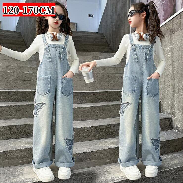 キッズ サロペット パンツ 子供服 女の子 オーバーオール 蝶柄 可愛い オールインワン ワイドパンツ カーゴ デニムパンツ ジーンズ ボトムス ジュニア 120 130 140 150 160 170cm