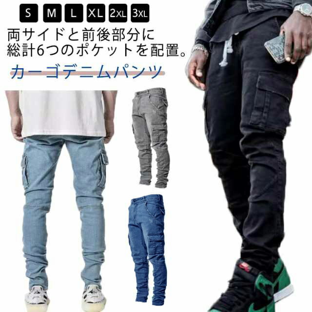 S-5XL4色伸縮性 今年も人気のカーゴデニムパンツ!!▲デザインも個性的で、綺麗!程よい伸縮性のある生地を使用し、座ったり、足を曲げたりするのも楽にできます。▲ジャケットにもマッチするアーバンな仕上がりもちろん全体がストレッチ素材を使用し、モモから膝、裾にかけて美しいラインが自慢のパンツです▲ウエスト部分にベルトループを採用。両サイドと前後部分に総計6つのポケットを配置。▲高い位置に施されたダメージが視線を上に持ち上げ、脚長効果◎▲後ろ姿もスッキリシルエット▲ジーンズ王道のテーパードシルエット膝位置を高く見せる美脚効果タイトフィット サイズS M L XL 2XL 3XL 4XL 5XLサイズについての説明※上記サイズは平置き実寸になります。サイズ表の実寸法は商品によって1-3cm程度の誤差がある場合がございます。(単位:cm)素材綿、ポリエステル、ポリウレタン色ブラック ライトブルー グレー ブルー備考●サイズ詳細等の測り方はスタッフ間で統一、徹底はしておりますが、実寸は商品によって若干の誤差(1cm〜3cm )がある場合がございますので、予めご了承ください。●商品の色は、撮影時の光や、お客様のモニターの色具合などにより、実際の商品と異なる場合がございます。あらかじめ、ご了承ください。●▼色味の強い製品によっては他の衣類などに色移りする場合もございますので、速やかに(脱水、乾燥等)するようにお願いいたします。▼▼生地の特性上、やや匂いが強く感じられるものもございます。数日のご使用や陰干しなどで気になる匂いはほとんど感じられなくなります。デニムパンツ メンズ ジーパン ストレ ズボン パンツ 割引 ブラック ライトブルー グレー ブルー S M L XL 2XL 3XL 4XL 5XL