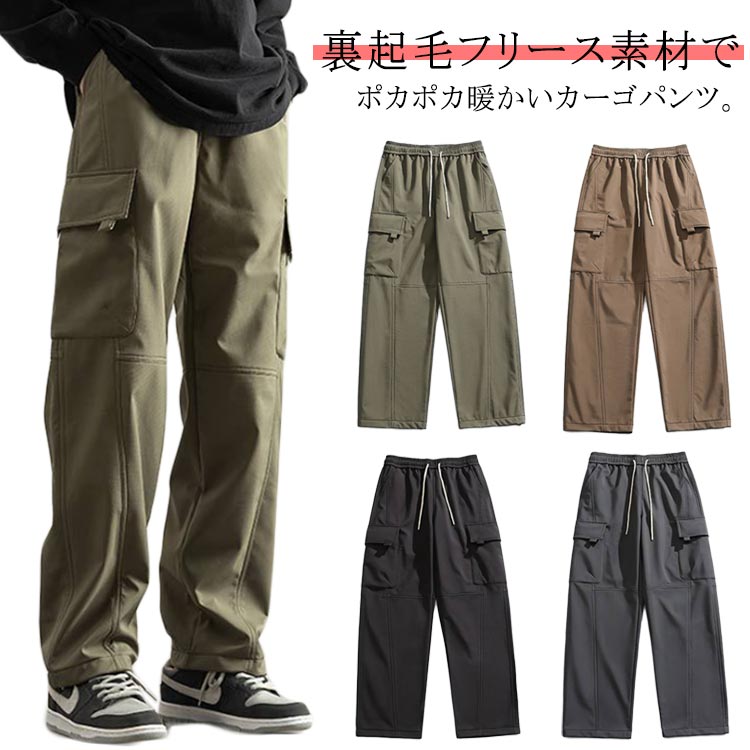 登山パンツ メンズ カーゴパンツ ゆったり ストレート ロングパンツ 男性用 アウトドア ウェア 秋冬 防寒 撥水 登山 釣り ゴルフウェア カジュアル ブラック カーキ