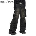 ワイドパンツ マルチポケット カーゴ ブッシュ 黒 ブラック メンズ バギーパンツ ストレッチデニム デリッカー パンク ロック ヴィジュアル系 ロカビリー ウエスタン ヒップホップ