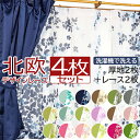 カーテン 非遮光 4枚セット カーテン4枚組 ( カーテン & ミラー レース カーテン ) 幅 100 丈 110 135 178 190 200 210 220 230 cm 各 2枚組 幅 150 丈 178 230 各1枚組 激安 安い 北欧 シンプル かわいい おしゃれ 4枚組カーテン 無地 既製 洗濯可能 ナチュラル アイボリー