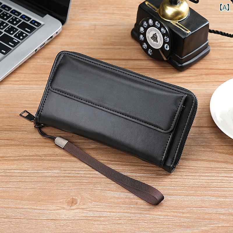 財布 メンズ ロング ファスナー ウォレット クラッチバッグ セカンドバッグ 大容量 PUレザー カード入れ スマホ収納 多機能ポケット 普段使い ビジネス カジュアル おしゃれ ブラック ブラウン シンプル