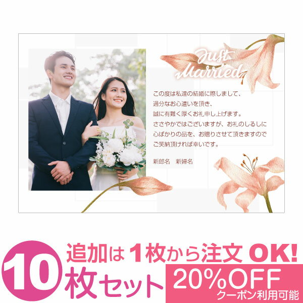 【あなたの写真とあいさつ文を入れて1枚から印刷OK】 写真入り 10枚セット オリジナル メッセージカード 結婚報告 結婚内祝い 出産内祝い 快気内祝い お祝い お返し おしゃれな 挨拶状 ポストカード はがき ハガキ 葉書 グリーティングカード