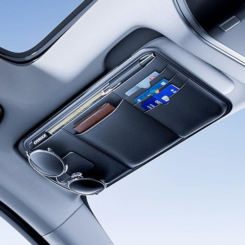 Raksonic 車眼鏡ホルダー サンバイザーポケット 車載メガネクリップ 小物入れ ケース 収納 多機能 ポケット カード 領収証 ペン サングラス 車用メガネケース 耐摩耗 車載収納用 取り付け簡単