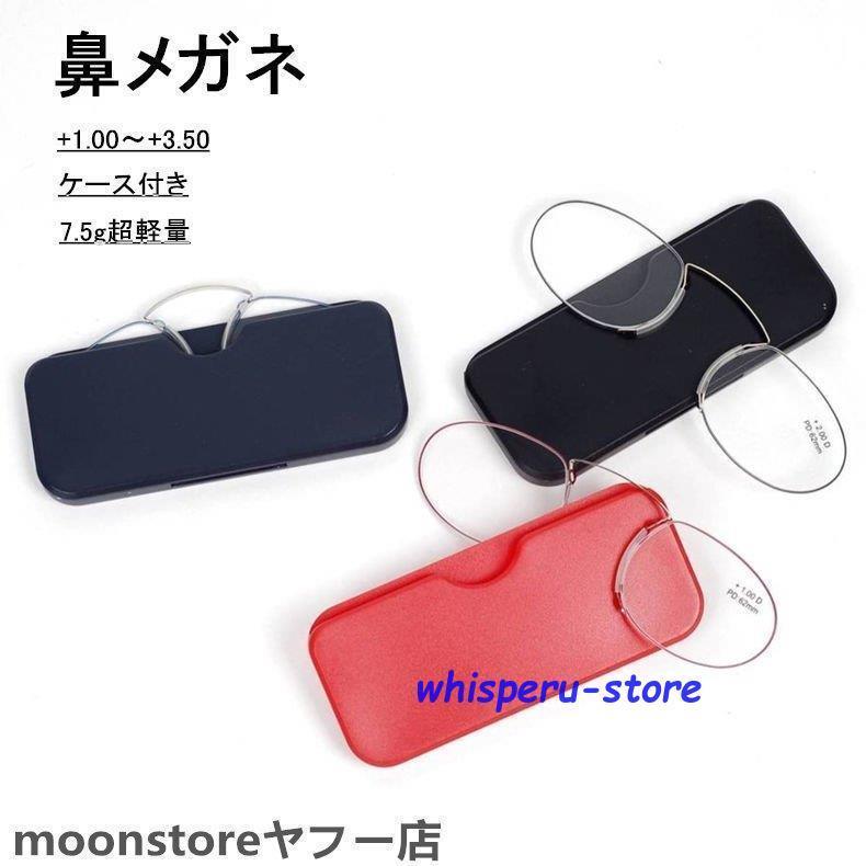 ノーズクリップ 超軽量 レディース メンズ シニアグラス おしゃれ 携帯式マイクロ老眼鏡 専用ケース付属 度数+1.0〜+3.5 全6色 メガネ 携帯用 リーディンググラス 老眼鏡 鼻掛け ルーペ 敬老の日 プレゼント