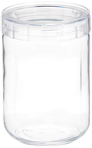 透明で多彩に使いこなせるシンプルなデザイン 本体サイズ:胴径10.2x高さ14.0x口径8.5cm 容量:800ml 使いやすさを考えた広口設計 材質:本体/ソーダライムガラスフタ/PMMA=メタクリル樹脂(アクリル樹脂)パッキン/PE=ポリエチレン キャップの上からでも中味が見える透明タイプ