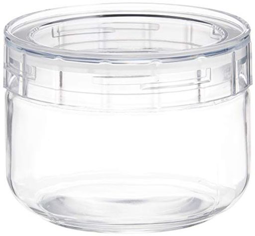 容量:600ml 本体サイズ:胴径11.5×高さ8.9×口径9.8cm 材質:本体/ソーダライムガラス フタ/PMMA=メタクリル樹脂(アクリル樹脂) パッキン/PE=ポリエチレン 使いやすさを考えた広口設計 透明で多彩に使いこなせるシンプルなデザイン 広口だから中身が出しやすく容器の底まできれいに洗えて衛生的