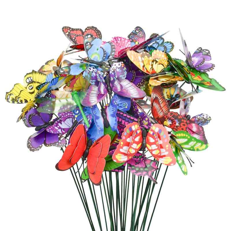 MrMrKura ガーデンピック バタフライ 蜻蛉 40本セット ガーデニング ピック トンボ ガーデン装飾 蝶 ガーデンスティック 園芸 置物 庭飾り オーナメント 小さい カラフル PVC製 屋外
