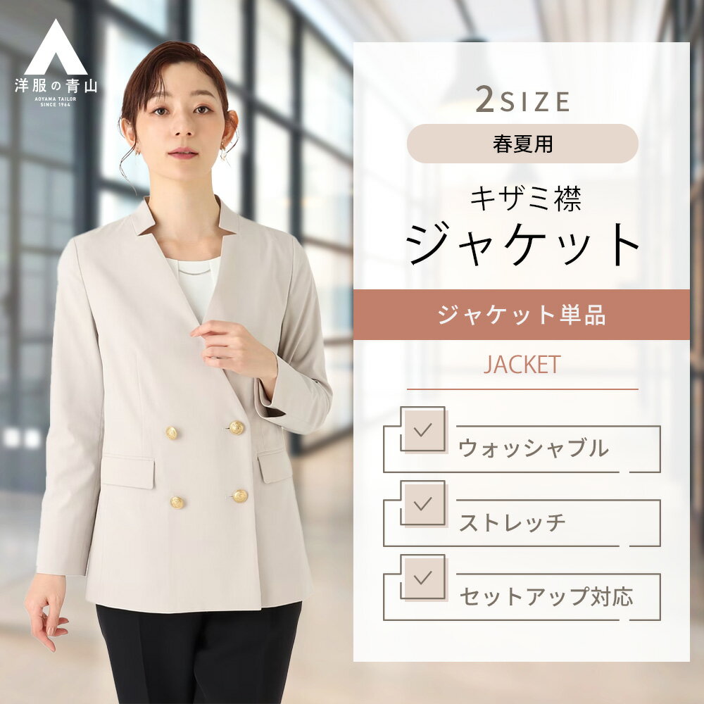 【洋服の青山】キザミ襟ダブルジャケット レディース スーツ 春夏用 グレー系 ウォッシャブル 洗える ストレッチ 防シワ カジュアル ビジカジ ビジネス セレモニー 入学式 卒業式 女性 おしゃれ かわいい ANCHOR WOMAN