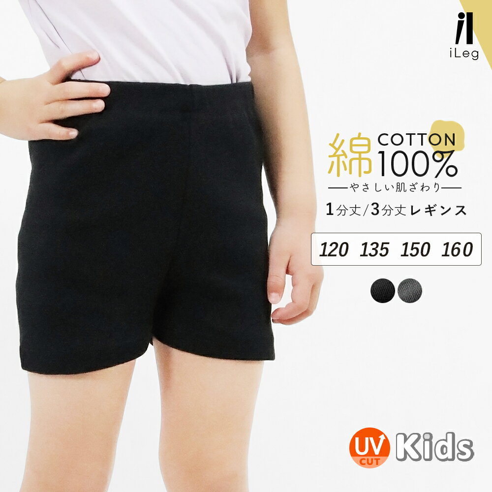 キッズ レギンス スパッツ 1分丈 3分丈 綿100% インナーパンツ オーバーパンツ 子供 ジュニア ショート丈 短い 防寒 黒パン 男の子 女の子 120 135 150 160 黒 無地 通園 通学 iLeg ch *1 *2-2t *y3-3t