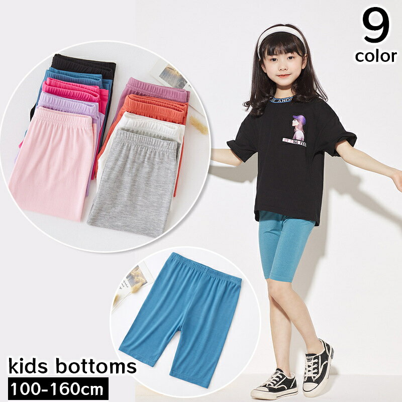 送料無料 スパッツ 単品 5分丈 レギンス 子供服 キッズ ジュニア 女の子 男の子 ハーフカットレギンス オーバーパンツ インナーパンツ ぺチパンツ ボトムス ウエストゴム 無地 単色 シンプル ちら見え防止 女児 男児 子ども こども