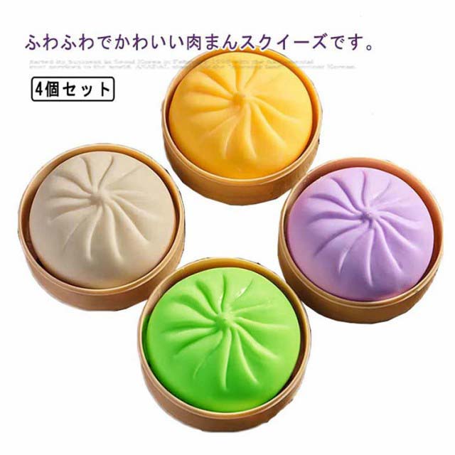 ふわふわでかわいい肉まんスクイーズです。もちもちふっくら柔らかな感触。びよーんと伸ばすこともできます。押すだけでストレス解消ができます。肉まん4個とせいろ個がパッケージに入っております。子どものおもちゃとしてはもちろん、大人もストレス解消グッズとして活用可能です。 サイズ4個セット(せいろ付き)サイズについての説明直径10cm 4個セット(せいろ付き) ホワイト+イエロー+パープル+グリーン素材TPR色4個セット備考 ●サイズ詳細等の測り方はスタッフ間で統一、徹底はしておりますが、実寸は商品によって若干の誤差(1cm〜3cm )がある場合がございますので、予めご了承ください。●製造ロットにより、細部形状の違いや、同色でも色味に多少の誤差が生じます。●パッケージは改良のため予告なく仕様を変更する場合があります。▼商品の色は、撮影時の光や、お客様のモニターの色具合などにより、実際の商品と異なる場合がございます。あらかじめ、ご了承ください。▼生地の特性上、やや匂いが強く感じられるものもございます。数日のご使用や陰干しなどで気になる匂いはほとんど感じられなくなります。▼同じ商品でも生産時期により形やサイズ、カラーに多少の誤差が生じる場合もございます。▼他店舗でも在庫を共有して販売をしている為、受注後欠品となる場合もございます。予め、ご了承お願い申し上げます。▼出荷前に全て検品を行っておりますが、万が一商品に不具合があった場合は、お問い合わせフォームまたはメールよりご連絡頂けます様お願い申し上げます。速やかに対応致しますのでご安心ください。