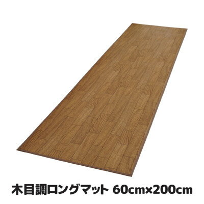 サッとひと拭き!フローリングのお掃除らくらく! 木目調 フローリング調 マット ラグ キッチンマット ブラウン 60cm 200cm 日本製 ●木目調ロングマット 60cm×200cm