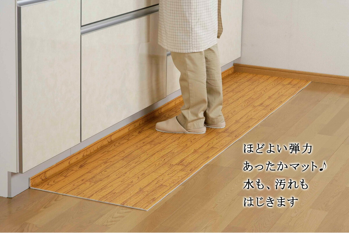 キッチンマット ブラウンキズ防止 床材 木目調 マットクッション 汚れ防止 たためる エココンパクト 省エネ アイデア ロングマットあったか 拭くだけ お手軽