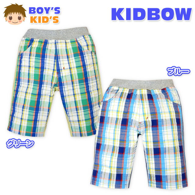 【送料無料】子供服 男の子 ハーフ パンツ KIDBOW キッドバウ ボトム チェック柄 バック切替 ウエストゴム 男児 キッズ 100cm 110cm 120cm 130cm【メール便対応】