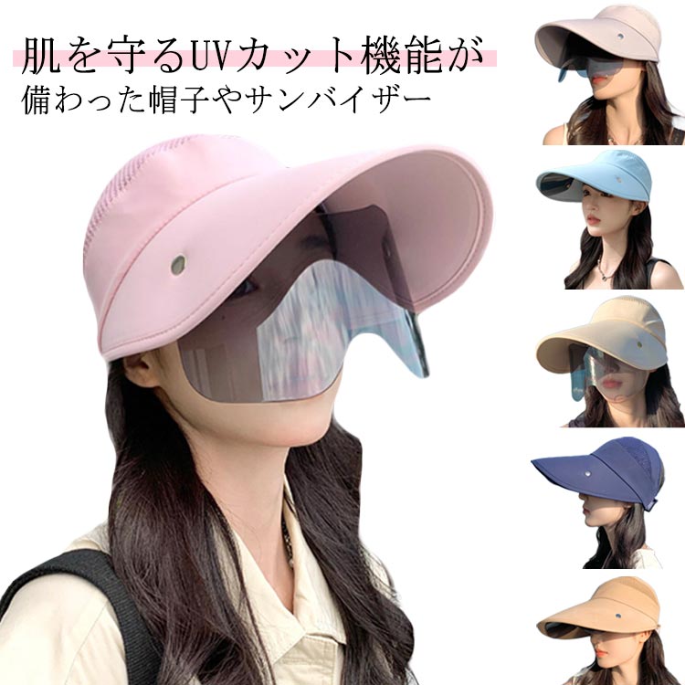 サンバイザー レディース つば広 ゴルフ 帽子 通販 つば広帽子 つばひろ帽子 キャップ 日よけ帽子 UVカット帽子 全顔サングラス サングラス付き フェイスカバー ワイドバイザー あご紐 紫外線対策 UVカット アウトドア 日よけ 日除け 夏 ガーデニング
