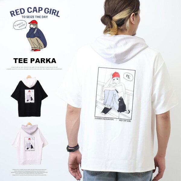 RED CAP GIRL レッドキャップガール 冷感とろみポンチ バックプリント Tパーカー 半袖Tシャツ 半T ビッグシルエット オーバーサイズ メンズ レディース ユニセックス 送料無料 RE25SU15