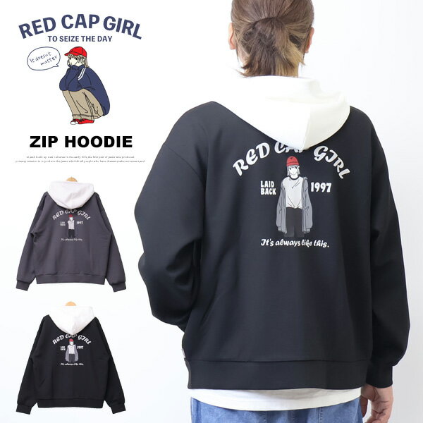 RED CAP GIRLレッドキャップガール シルクタッチダンボールニット バックプリント フルジップパーカー フーディ ビッグシルエット オーバーサイズ メンズ レディース ユニセックス 送料無料 RE26AW25