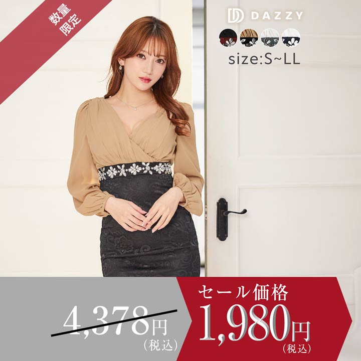 ⇒あわせて買いたい!ヌードブラはこちら エレガントなデザインと快適な着心地を兼ね備えたドレスは、肌触りが良く柔らかなシフォン素材を使用しており、長時間の着用でも締め付け感がなく、ストレスフリーでお楽しみいただけます。特に胸元の透け感があり、さりげなくセクシーさを演出しつつ、清楚なイメージを保ちます。 デザインにはクラシカルな要素が取り入れられており、ウエスト部分には繊細な花の装飾が施されています。これがドレス全体に華やかさを加え、どんなパーティーシーンにも映えること間違いなしです。サイズ展開はSからLLまでと幅広く、多くの方にフィットする選択肢を提供します。 謝恩会やパーティーなど、特別な日の装いとして最適なこのドレスは、着るだけで一際目立つことができるでしょう。また、即日発送可能なので、急なイベントにも対応可能です。美しさと機能性を兼ね備えたこのドレスで、あなたの魅力を最大限に引き出してください。 サイズ:S/M/L/LL [Sサイズ] 総丈:79cm/肩幅:33cm/袖丈:56cm B:78-92cm/伸縮あり W:60-63cm/伸縮なし H:78-90cm/伸縮あり [Mサイズ] 総丈:82cm/肩幅:35cm/袖丈:58cm B:80-94cm/伸縮あり W:62-65cm/伸縮なし H:80-92cm/伸縮あり [Lサイズ] 総丈:86cm/肩幅:37cm/袖丈:59cm B:82-96cm/伸縮あり W:64-66cm/伸縮なし H:82-96cm/伸縮あり [LLサイズ] 総丈:88cm/肩幅:38cm/袖丈:60cm B:84-98cm/伸縮あり W:66-68cm/伸縮なし H:84-98cm/伸縮あり 素材 表地:シフォン/レース ポリエステル95%/ポリウレタン5% 裏地:ポリエステル100% 伸縮性:あり ファスナー:バック/ホック:あり パット:あり 裏地:あり 透け:心配なし 肩紐調節:不可 スリット:あり(バック部分/全長:11cm) 【モデル】真優川咲(159cm) 【着用詳細】Sサイズ ご注意ください。 ⚠採寸は実寸で行っております。スタッフによる採寸ですので多少の誤差が生じる場合があります。 ⚠柄生地、レース素材の場合、1点1点多少見え方が異なります。 ⚠モデル着用写真は光の加減等によって、多少実際のカラーと異なる場合がございます。実際のカラー目安はトルソー写真をご確認ください。 ■サイズ Sサイズ えすさいず Mサイズ えむさいず Lサイズ えるさいず LLサイズ えるえるさいず 2Lサイズ つーえるさいず 3Lサイズ すりーえるさいず 5号 7号 9号 11号 13号 15号 小さいサイズ ちいさいさいず 小さめサイズ ちいさめさいず 大きいサイズ おおきいさいず 大きめサイズ おおきめさいず サイズ展開 さいずてんかい ■カラーバリエーション ホワイト white 白 しろ ほわいと ベージュ beige 茶色 ちゃいろ ブラウン brown べーじゅ 肌色 はだいろ ブラック black 黒 くろ ぶらっく ネイビー navy 紺 こん ねいびー ブルー blue 青 あお ぶるー ディープカラー でぃーぷからー ダークカラー だーくからー 濃い こい 濃色 こいいろ シックカラー しっくからー こっくり バイカラー ばいからー ツーカラー つーからー 2色 にしょく ■柄 シンプル しんぷる 刺繍 ししゅう エンブロイダリー えんぶろいだりー ■素材 シフォン しふぉん シフォン しふぉん ビジュー びじゅー ■特徴 長袖 ながそで ロングスリーブ ろんぐすりーぶ 袖付き 袖つき そでつき パフスリーブ ぱふすりーぶ ワンピース わんぴーす ワンピ わんぴ ミニドレス ショートドレス みにどれす しょーとどれす ミニ丈 みにたけ ショート丈 しょーとたけ ひざ上丈 ひざうえたけ タイトドレス たいとどれす ストレートライン すとれーとらいん ストレートスカート すとれーとすかーと スレンダーライン すれんだーらいん シースルー しーするー 透け魅せ 透け見せ 透けみせ すけみせ シアー しあー 谷間魅せ 谷間見せ 谷間みせ たにまみせ 春 夏 秋 冬 はる なつ あき ふゆ オールシーズン おーるしーずん 春夏 はるなつ 秋冬 あきふゆ スプリング Spring すぷりんぐ サマー Summer さまー オータム autumn おーたむ ウインター winterういんたー ウィンターうぃんたー 20代 30代 アラサー 真優川咲 まゆかわさき まゆさき ハイウエスト はいうえすと 脚長効果 足長効果 あしながこうか dazzyQueen デイジークイーン でいじーくいーん キャバドレス きゃばどれす ナイトドレス ないとどれす キャバクラ嬢 きゃばくらじょう キャバ嬢 きゃばじょう キャバ きゃば 夜蝶 やちょう 水商売 みずしょうばい ガールズバー がーるずばー ニュークラ にゅーくら 激安 げきやす 格安 かくやす 安い やすい プチプラ ぷちぷら キャバクラ ドレス キャバワンピ ワンピース わんぴーす 服 ふく 服装 ふくそう Beaute ボーテシリーズ Beauty ぼーてしりーず ビューティーシリーズ びゅーてぃーしりーず 大人っぽい 色っぽい レディ れでぃ 美人 びじん キレイめ ■ジャンル dazzy store DAZZY STORE デイジーストア デジーストア ダジーストア でいじーすとあ daisy レディース れでぃーす 女性 じょせい 女性用 じょせいよう 大人 おとな キャバドレス きゃばどれす ナイトドレス ないとどれす dress ドレス どれす キャバクラ嬢 きゃばくらじょう キャバ嬢 きゃばじょう キャバ きゃば 夜蝶 や