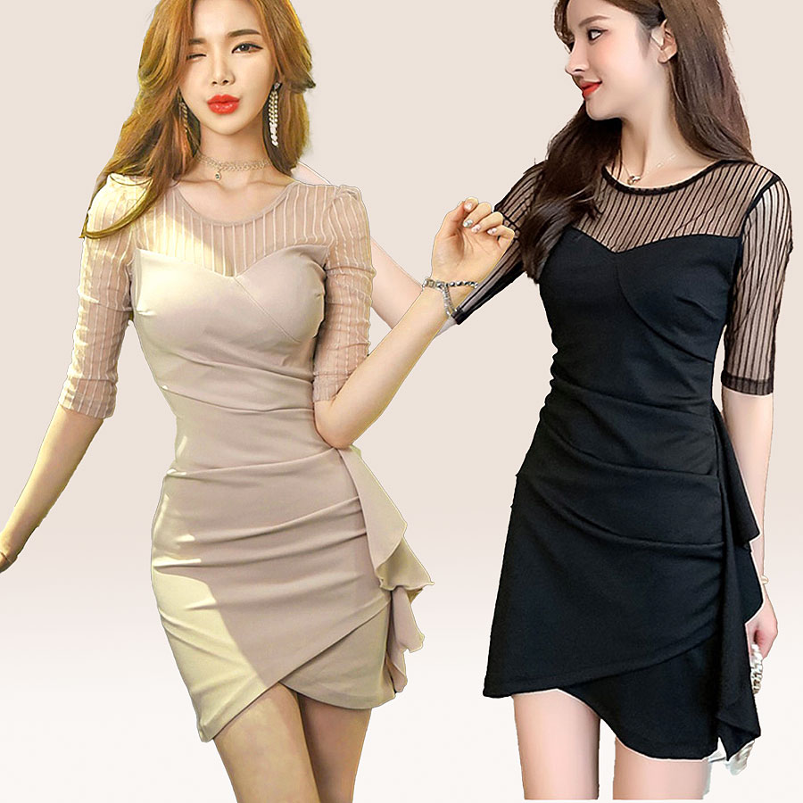 [ SALE ¥1980 ← ¥5478 ]シフォン透けクラシカルタイトミニドレス [S〜LLサイズ/4サイズ展開]