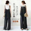 【送料無料】セットアップ レディース カジュアル プリーツ ペプラム ビスチェ キャミソール 上下セット 夏 ワイドパンツ ウエストゴム キャミセットアップ