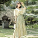 ワンピース レディース チャイナ風 改良漢元素 羽織り インナーキャミ セットアップ ポリエステル Vネック ミディ丈 ノースリーブ 五分袖 春夏 フェミニン