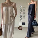 セットアップ レディース カジュアル 夏 2点セット キャミソール ワイドパンツ ハイウエスト 柔らかい ロング丈 韓国ファッション ゆるゆる 可愛い お出かけ ゆったり ゆるゆる おしゃれ 着痩せ 旅行 デート 女子会 春夏 重ね着 レイヤード風