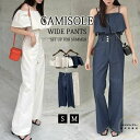 【送料無料】レディース カジュアル デニム 夏 2点セット キャミソール ワイドパンツ ハイウエスト ロング丈 韓国ファッション ゆるゆる 可