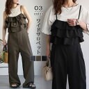 【3,380円!クーポン利用で】 セットアップ レディース 夏 きれいめ カジュアル プリーツ ペプラム ビスチェ キャミソール キャミ 上下セット 夏 ノースリーブ ワイドパンツ 麻 リネン ウエストゴム おしゃれ ワイド ロング ガチョウパンツ ゆったり 涼しい