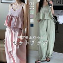 【1点3,980円!クーポン利用で!】 セットアップ レディース 夏 きれいめ カジュアル プリーツ ペプラム ビスチェ キャミソール キャミ 上下セット 夏 ノースリーブ ワイドパンツ 麻 リネン ウエストゴム おしゃれ ワイド ロング ガチョウパンツ ゆったり 涼しい