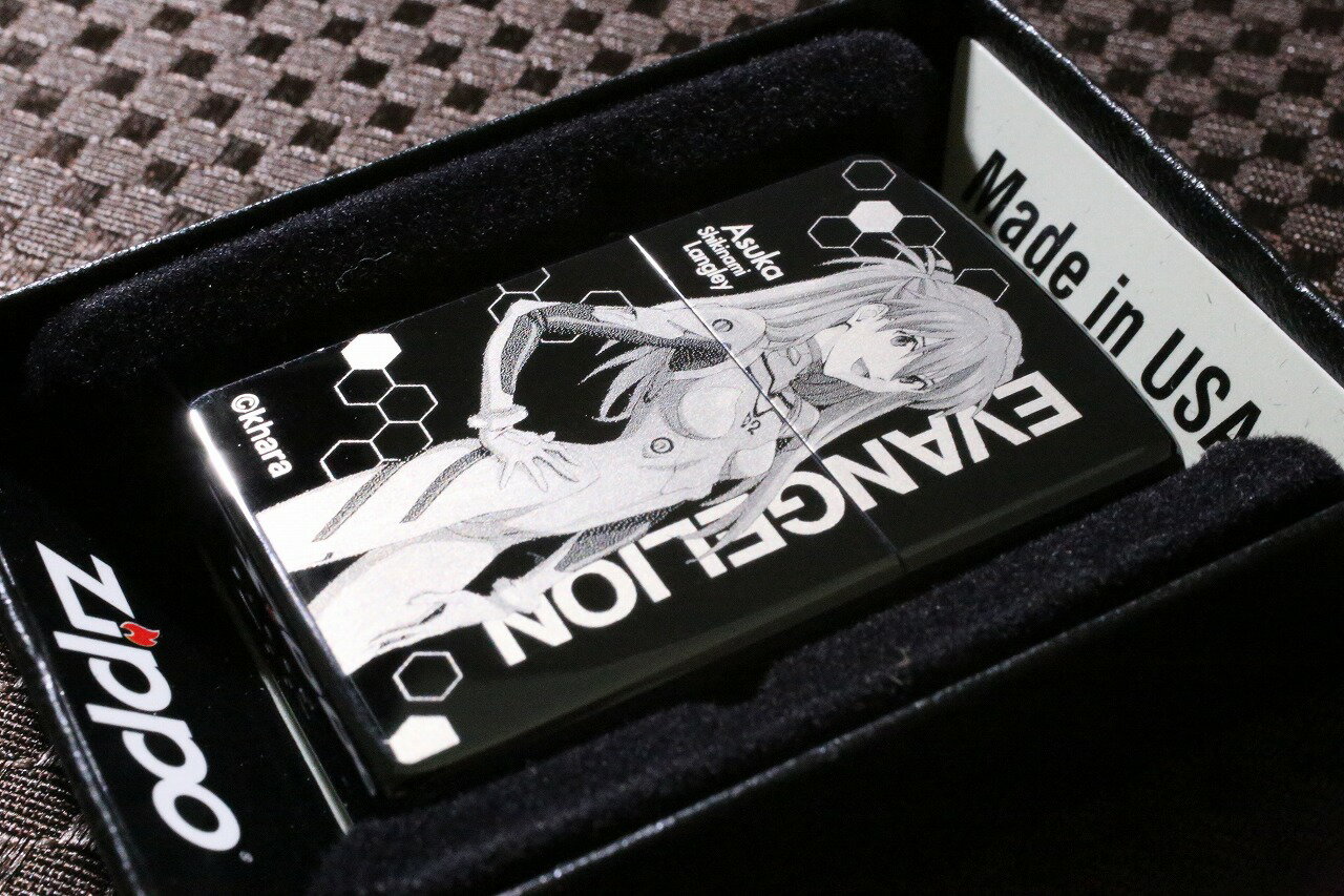 【品名】エヴァンゲリオン・アスカ エヴァジッポ 正規品 【製品詳細】ZIPPO社のオイルライターです。 カラー:ブラック黒つや有りベースにマイクロレーザー彫り ★付属品:専用箱・永久保証書付き 【製品説明】 ブラックチタンコーティングの艶有りの下地にエヴァのアスカをマイクロレーザーで彫った美しいキャラZIPPOです。 マイクロレーザー彫刻はプリントのジッポと違って絵がはげたりしません。安心してお使い下さい。 エヴァファンは是非! 横面に限定シリアルナンバー入りです。 ※刻印(ボトム・インナー)の年月指定は出来ませんのでお問い合わせはご遠慮ください。 シリアルナンバーは選べません。限定シリアルナンバー入りのエヴァジッポ!