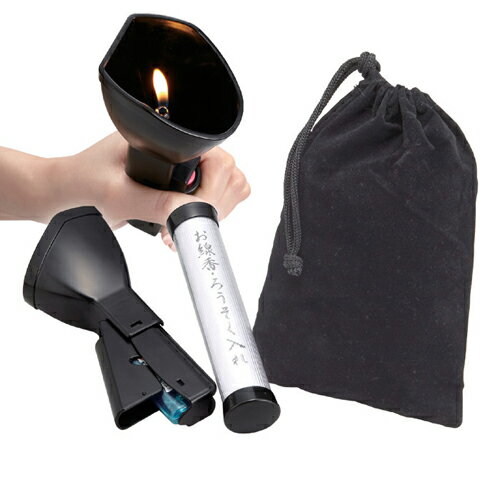 屋外でもお線香に火が点けやすいアイデアグッズ。軽〜い力で着火できる風よけフード付きのライター補助具セットです。 市販の着火ライターは、近頃では子供のいたずら防止のために、着火ボタンが重い構造になってます。 力の弱い人なら着火が難しいのが現状。これは「とても着火なんてできない」というかたのために作られた商品です。 着火はレバー部分を握るだけ。テコの原理を応用した構造になってます。 風防は取り外しも可能です。お墓参りに便利なお線香やろうそくが入るケースと巾着袋のセットです。●サイズ:風防ライター補助具/約7.5×5.5×16.5cm 約57g 巾着袋/約14×21.5cm 約10g お線香・ろうそく入れ/約直径3.5×15cm 約24g ●材質:フード/PC樹脂 着火レバー/ABS樹脂 巾着袋/レーヨン(表地)・ポリエステル(裏地) お線香・ろうそく入れ/PC樹脂 ●セット内容:風防ライター補助具×1、巾着袋×1、お線香・ろうそく入れ×1 ●対応ライター:東海(CRチャッカマンジュニア)、ライテック(MM-GM-01チャカチャカ3クリア)(MM-GM-01チャカチャカ3CR) ●生産国:日本 ●パッケージサイズ:10×20×5.7cm 約119g備考※メーカー取り寄せ商品となりますので、ご注文後の注文キャンセルはお承りできません。※メーカー取り寄せ商品となりますので、返品交換は一切お受けいたしかねます。ただし初期不良の場合でメーカーに在庫が確認できる場合は交換にて対応致します。※商品開梱後は組み立てやご使用の前に、コンディション・付属品類が揃っていることをご確認ください。 お客様の都合による返品・交換はお受けできませんので、ご注意ください。※メーカー取り寄せ商品となりますので、メーカー欠品の場合はご注文をキャンセルさせていただきます。あらかじめご了承ください。