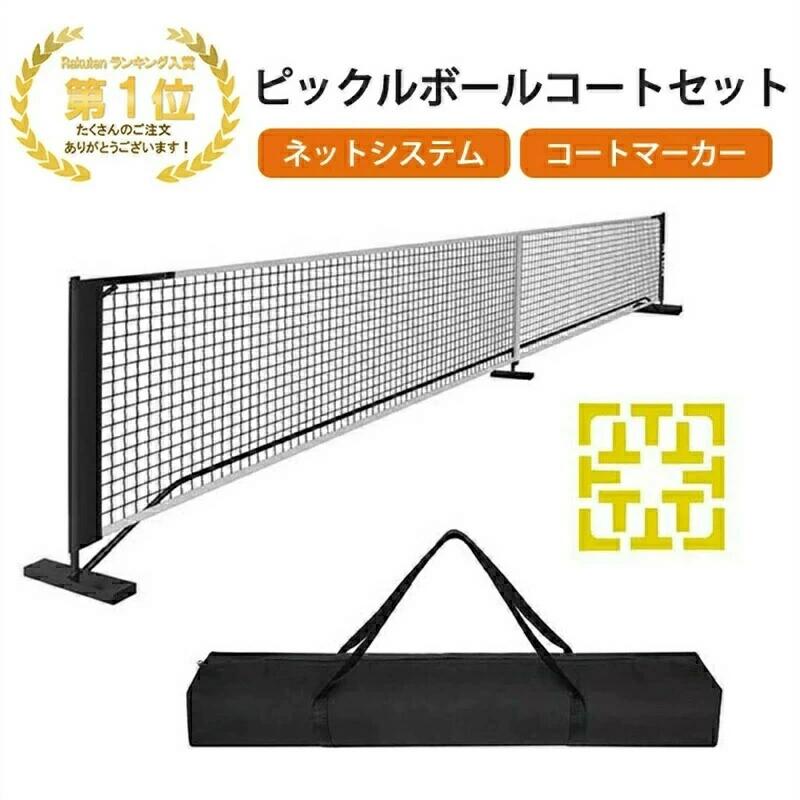 ピックルボールネットセット ポータブルネットシステム 公式サイズ キャリングバッグ コートマーカー付き 簡単組み立て 持ち運び便利 屋