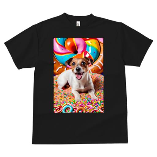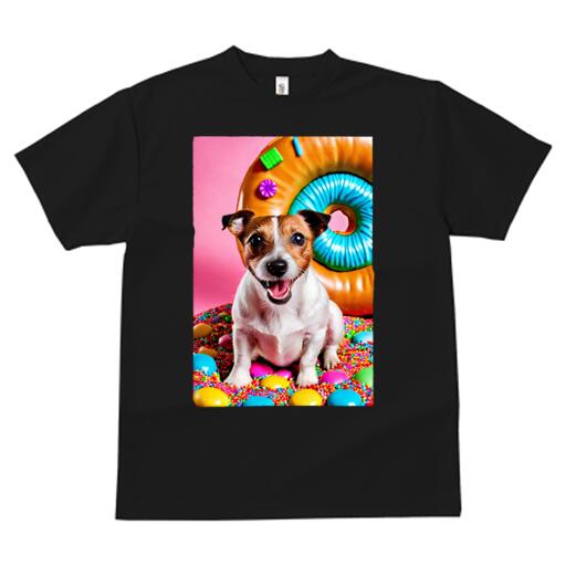 ジャックラッセルテリア Tシャツ メンズ キッズ 犬ファン 半袖 春夏 犬柄 プリント カジュアル かわいい 人間用 個性派 ここだけのデザイン 面白 ドーナツ ジャックラッセルテリア キャンディ スプリンクル