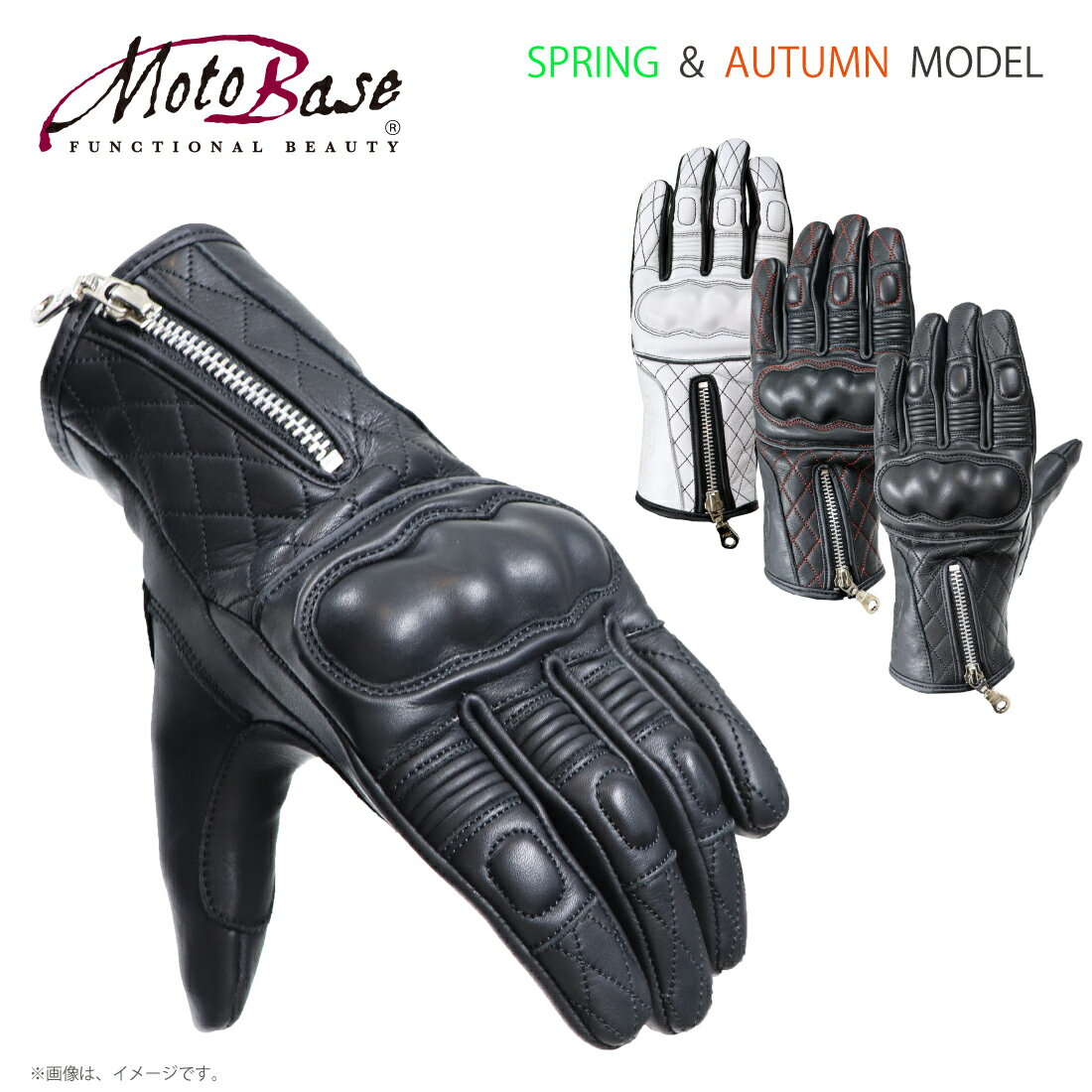 モトベース(MOTO BASE)春秋モデル バイク用 プロテクションキルト レザーグローブ|MBLG-01