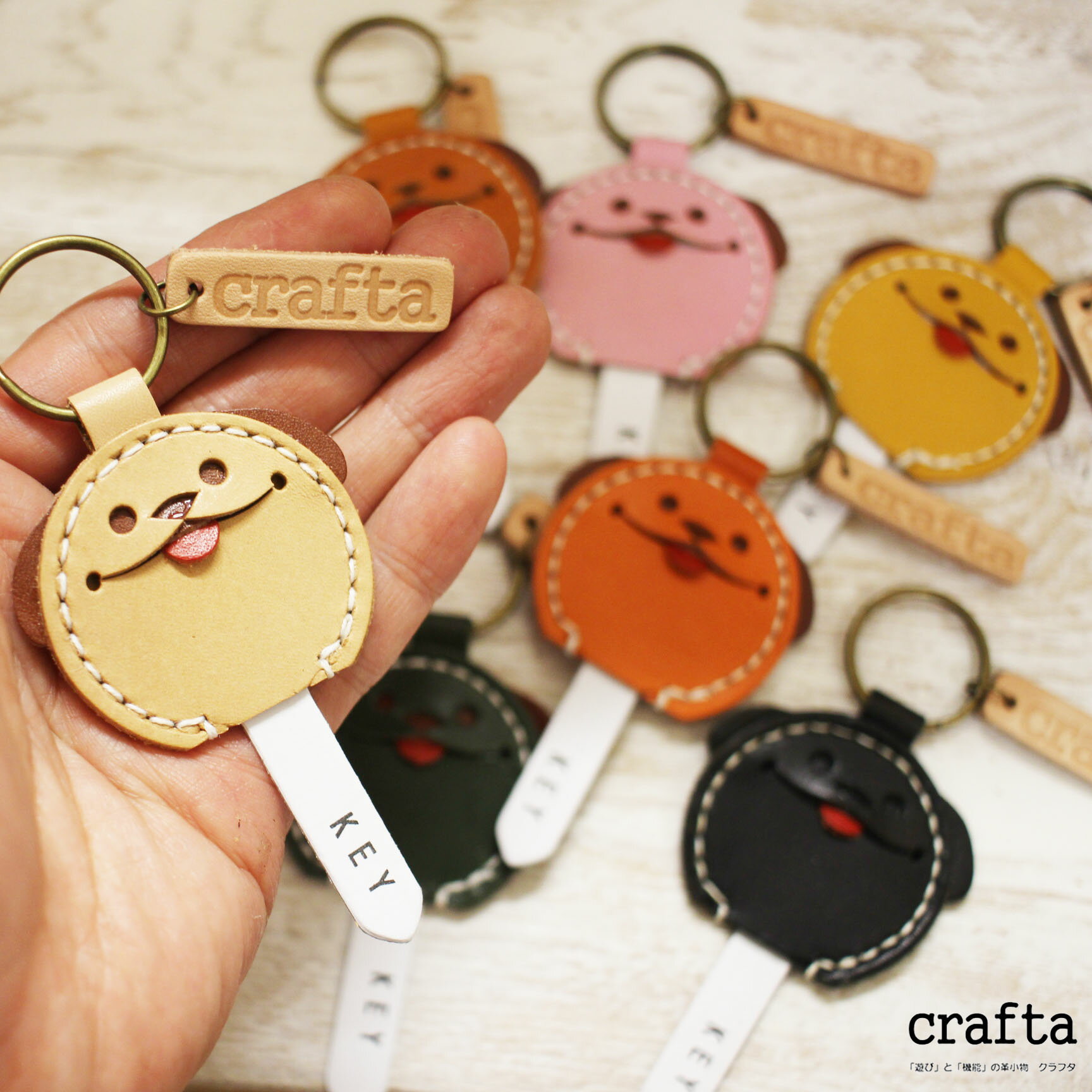 使うほどに味がでる牛ヌメ革を使用した、犬の顔をモチーフにしたキーカバーです。小さいですが手縫いで頑丈に仕上げていますので、長くお使いいただけると思います。ステッチは白、金具はブラスゴールドです。 口の部分から鍵を入れて使用します。入る鍵のサイズ目安は、頭の部分が直径約30mmまで、鍵部分の幅が約10mmです。鍵の種類によってはお使いただけない場合がございますので、あらかじめご理解ください。また鍵以外にも小銭を収納することもでき、便利にお使いいただけます。 サイズ:直径45mm(顔部分のみ、金具含まず) 色 :ベージュ・キャメル・ピンク・黄色・オレンジ・緑・黒・白・グレー・赤 (ステッチ白、金具ブラスゴールド) 素材 :牛革 ※写真の鍵は付属しません。 ※モニター発色によって色が異なって見える場合がございます。
