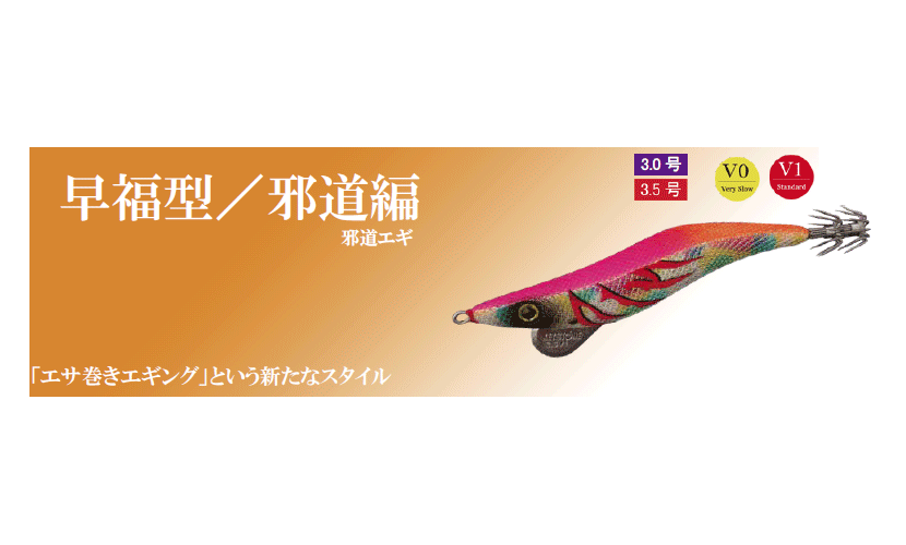 早福型/邪道編が可能にした「エサ巻きエギング」待望の3.0号サイズが新登場 「エギング感覚でエサ釣りをする」それが、エサ巻きエギング。フラットな背中に餌を乗せ エギングすることで、一度抱いたイカはエギを離しにくい。その為、流れの中にいるイカには 効果大であり、冬場の防波堤から狙うケンサキイカ、ヤリイカ、スルメイカには必需品である。早福型/邪道編3.0号 V0 重量:11gVery Slow 9〜15秒/m流れの緩やかな場所や比較的浅い場所、イカが浮いている常夜灯周辺にオススメ! ※ご注意・お願い■弊社では実店舗店頭や他の通販サイトでの販売も行っております。在庫があると表記されている商品でもタイミングによっては欠品となる場合もございますので、誠に恐れ入りますがご了承の程、お願い致します。 ■ご注文後、取寄せになる場合はメーカー在庫がある場合は2〜4メーカー営業日での入荷予定になります。 メーカー欠品中の場合は入荷未定によりキャンセルとさせていただく場合がございます。 ■保証書が付属してます商品に関しましては店名印・日付を記入させて頂きます。 店名印のみ及び、未記入は出来ません。 <同梱品等に関しましてのご注意> 複数個のご注文を頂きました場合、同梱可能な商品は同梱させて頂きますが、同梱が困難な場合は個別に送料を頂きますので予め、ご了承願います。