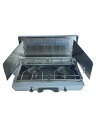 家のキッチンの安心感を、キャンプでも。気温の変化に影響されない液出し仕様で、安定した炎をキープ。火力調節もしやすく、重さに強く、料理の幅が広がります。専用のガスカートリッジを本体に逆さまに倒立させて装着します。ガスカートリッジが気化熱によって冷えることなく、安定したガス供給が最後まで継続する画期的な仕組みを持っています。▼ 重さ7.3kg▼ 素材ステンレス、アルミアルマイト加工、ブラス▼ 大きさ収納時500×110×360mm、風防装着使用時563×293×383mm、スタンド装着時563×514×383mm▼ 出力3000kcal(×2)▼ ガス消費量250g/h