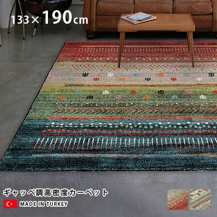 【日曜がお得!限定クーポンあり】 ギャベ 柄 おしゃれ ラグ 133x195 エスニック 調 ベルギー ラグマット 約 1.5畳 絨毯 長方形 ヨーロピアン カーペット リビング