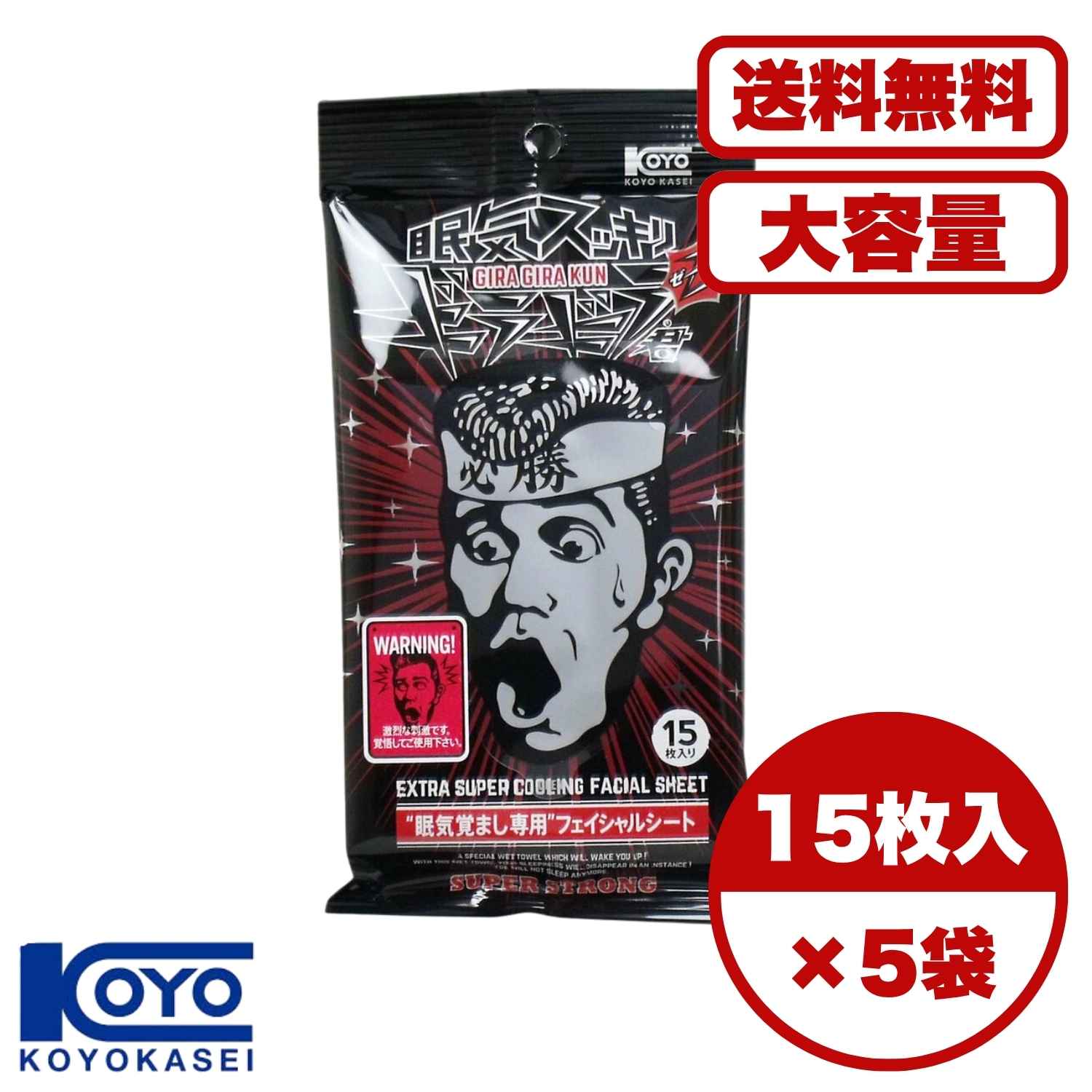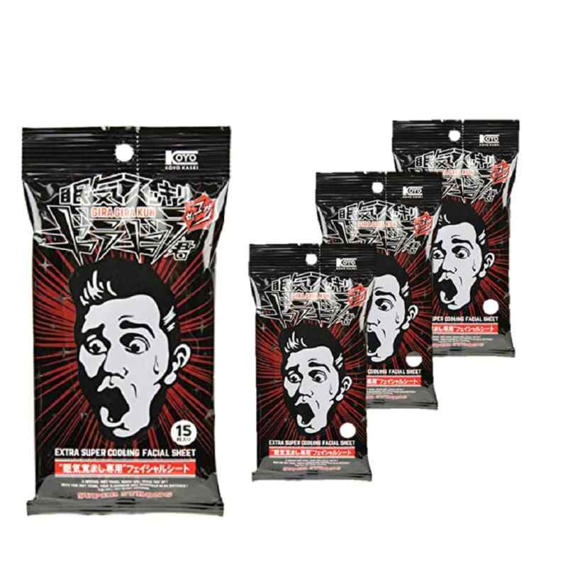 コーヨー化成 眠気 覚まし フェイス シート ギラギラ君 長時間運転 勉強 15枚入 4個セットサイズ:約15×20cm入数:15枚素材:レーヨン、PET不織布生産国:日本製