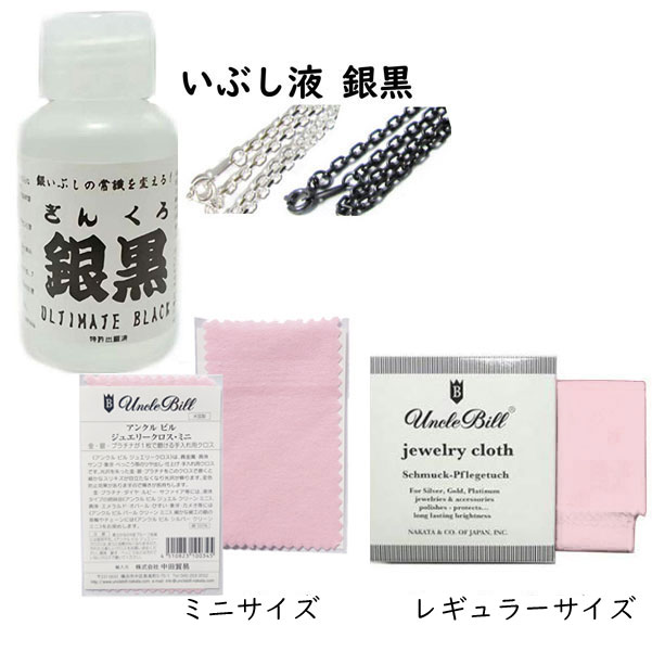 アクセサリーケア用品 いぶし液 銀黒(ギンクロ) 【100ml 1本】&アンクルビル unclebill シルバークロス (銀磨き布) いぶし液の名品 銀を黒く燻すその名も銀黒 燻し液 イブシ液 いぶし加工 いぶし液加工 古美 銀の黒化 シルバー メンテナンス アートクレイ シルバークラフト