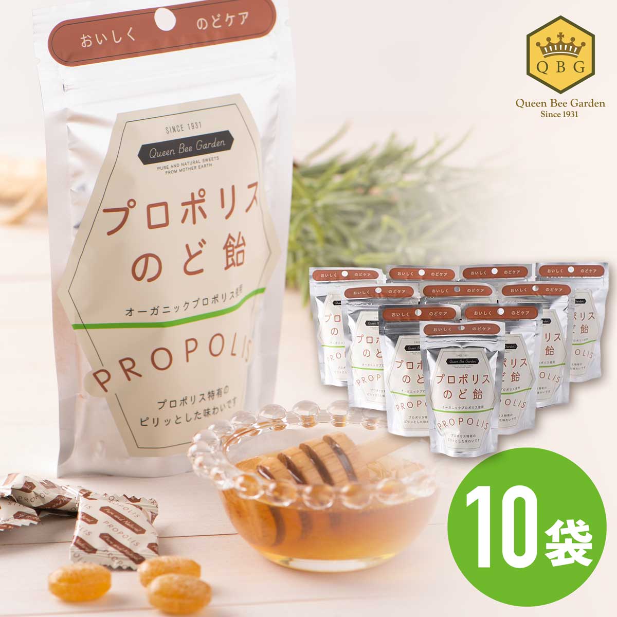 【プロポリスのど飴 10袋セット】 乾燥対策 クインビーガーデン 公式 のど飴 プロポリス オーガニックプロポリス 安心 自然派 ナチュラル のどケア グリーンプロポリス ブラジル キャンディ