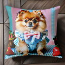 イチゴ ポメラニアン 蝶ネクタイ チェック柄 クッションカバー 45×45cm アニマル柄 おしゃれ 可愛い クッション本体付き 正方形 犬ファン