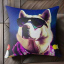 サングラス シベリアンハスキー ピンクのフェザーアクセサリー 夜景 クッションカバー 45×45cm アニマル柄 おしゃれ 可愛い クッション本体付き 正方形