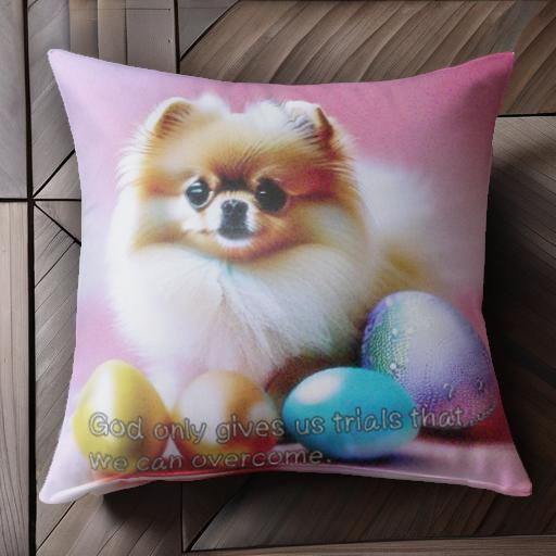 イースターエッグ ポメラニアン ピンクの背景 カラフル クッションカバー 45×45cm アニマル柄 おしゃれ 可愛い クッション本体付き 正方形 犬ファン