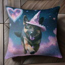 魔女帽子 ジャーマンシェパード ハート 星 雲 クッションカバー 45×45cm アニマル柄 おしゃれ 可愛い クッション本体付き 正方形